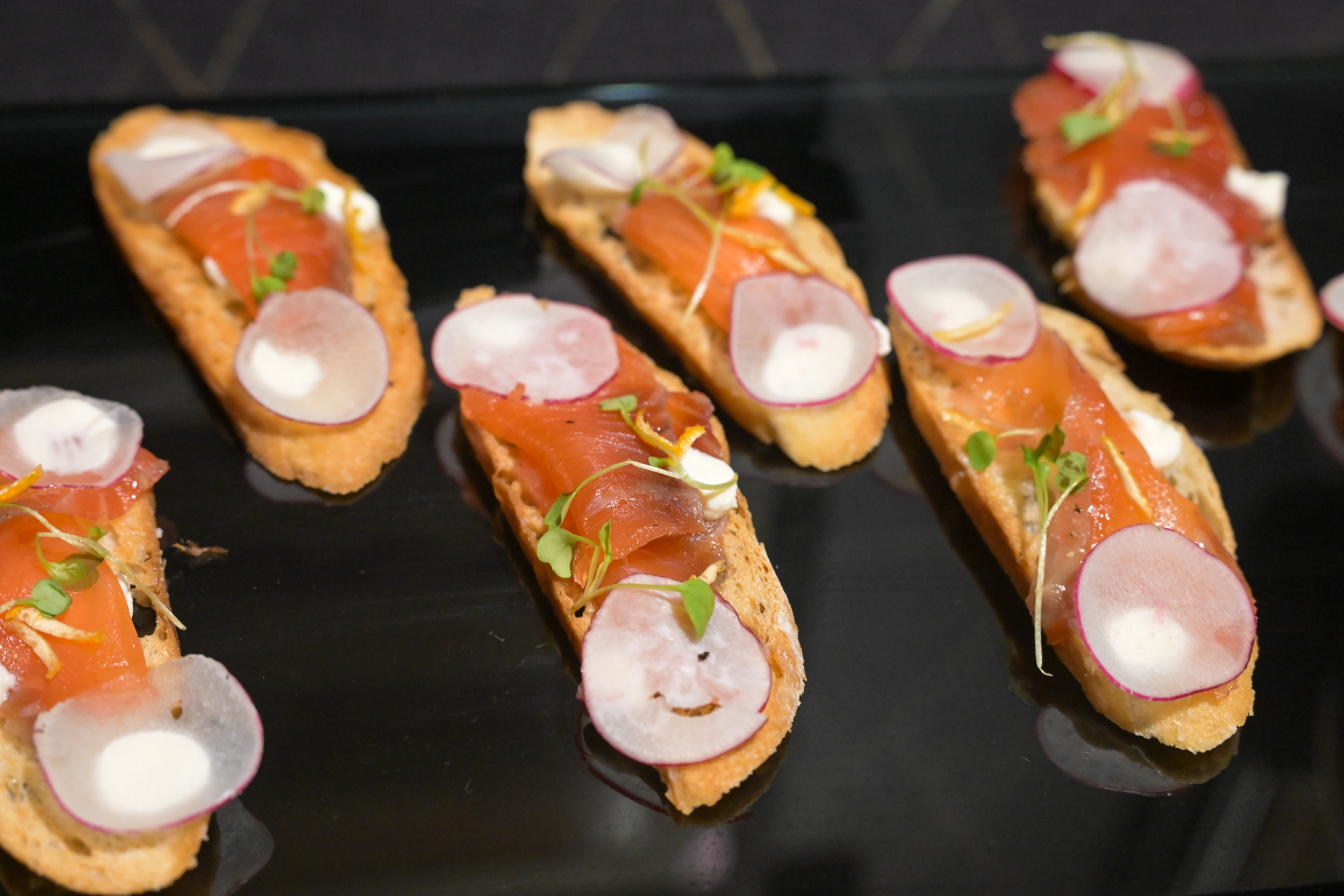 FC Cincinnati provided media access to the bar and lounge to sample their wares cooked up by Executive Chef Sheldon Morgan. Chef Morgan noted that they aimed for styles and selections much like those in the earlier 20th-century establishments, with emphasis on cured foods, clean-cut design, and smaller bites to allow for more socialization. Of note, the menu contains bites such as a gin-and-beet cured salmon, short rib with polenta, smoked deviled eggs, and hot chicken sliders. The beverage menu included “Gary’s Manhattan”, a riff on a whiskey-based black Manhattan, as well as a spicy margarita and a pear-and-ginger highball.