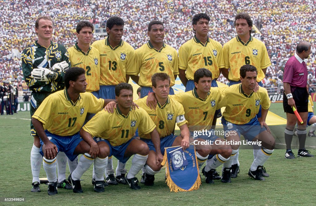 Brazil lineup before the final in 1994 against Italy (Photo by © Christian Liewig/Tempsport/CORBIS/Corbis via Getty Images)