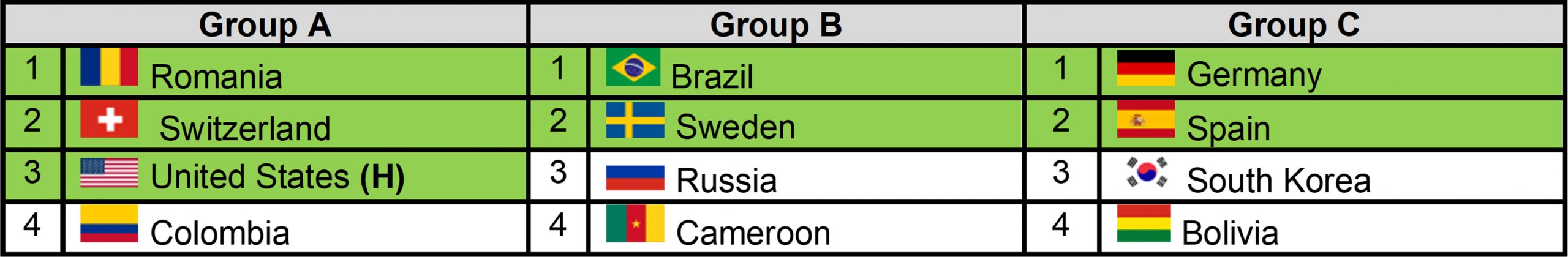 - United States (hosts) – Group A